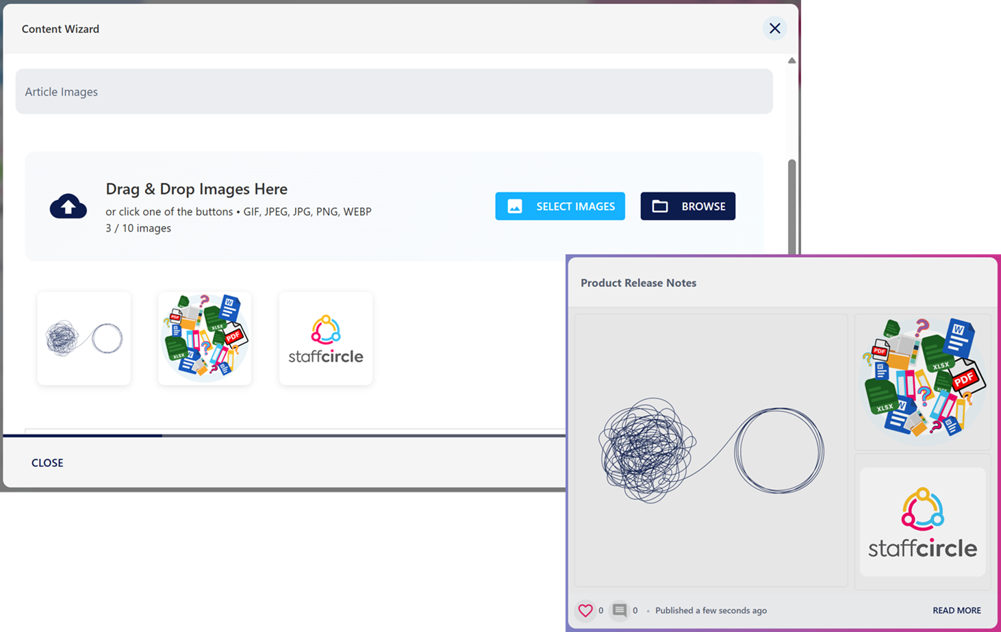 For both employees and content managers, the ability to add more than one image has been introduced, expanding the capability of comms posts.