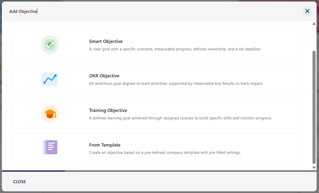 In our last release we updated the Add Objective design, reducing the number of screens in the creation wizard, and introducing the ability for end-users to add key results to OKRs. This time around we've applied the same design changes to the Manager view when adding an Objective.